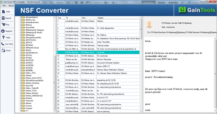 Lotus, Notes, Converter, Tool、NSFファイルのエクスポート、NSFファイルの変換。